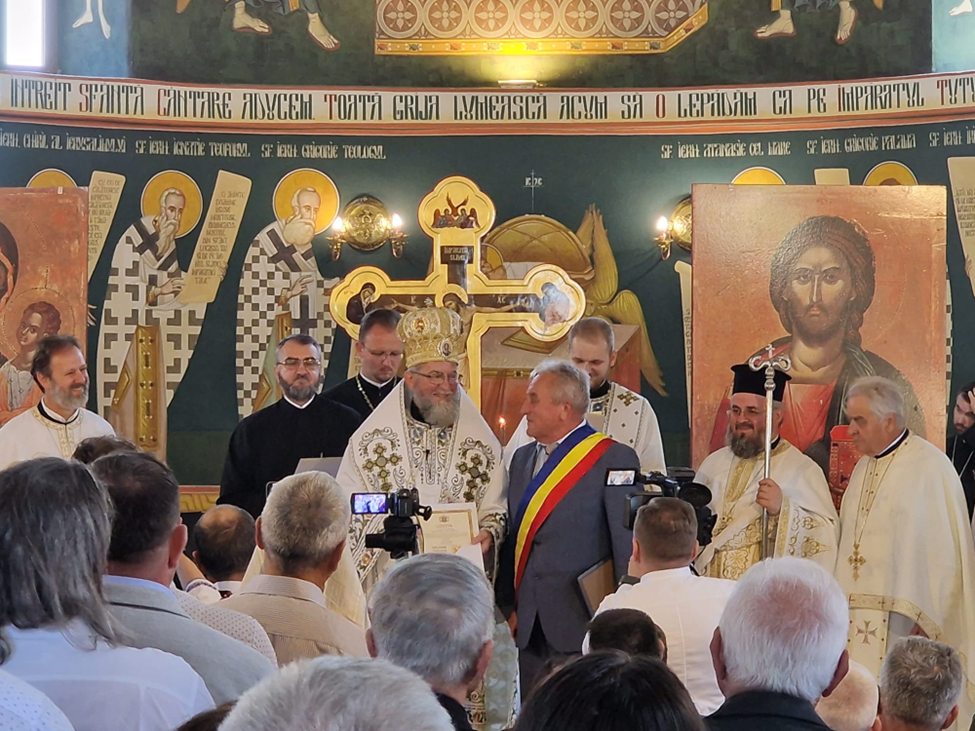 Părintele protopop Florin Stan a adresat cuvinte de apreciere și mulțumire tuturor colaboratorilor care au depus eforturi în a pune bazele acestei biserici, de la sponsori până la arhitecți, unități de învățământ și credincioși: „Preasfinția voastră, acum 20 de ani când m-ați hirotonit, mi-ați dat și 5 talanți ca să-i înmulțesc, iar aceștia nu au însemnat bunuri materiale ci acești credincioși minunați, darnici și jertfelnici, iubitori de Dumnezeu și de biserică, cu inimă bună și deschisă spre lucrarea duhovnicească a bisericii noastre ortodoxe. Nu poate fi trecută cu vederea jertfelnicia credincioșilor acestei biserici, nu este familie dintre cele 240 de familii ale parohiei noastre care să nu fi dăruit ceva după puteri și peste puteri, iar din acest motiv le suntem adânc recunoscători și mulțumitori.”